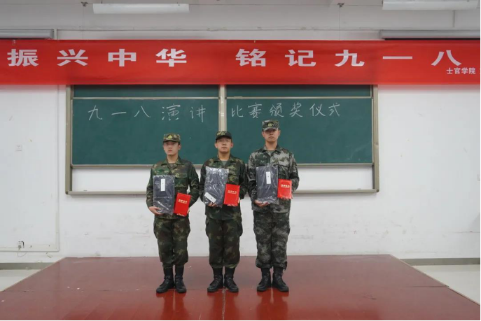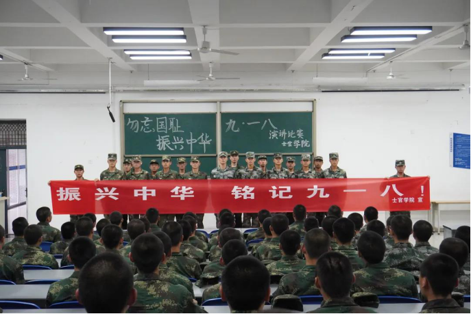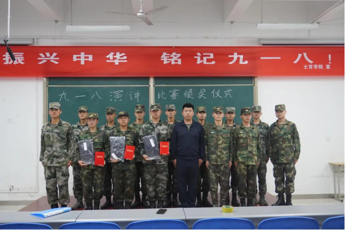 9月18日下午在士官学院军政教官芦智钢的带领下如期进行了纪念918演讲比赛颁奖仪式,士官学院骨干为获奖同学颁发了荣誉证书,激励着士官生不忘国耻,刻苦训练、努力学习,提高自身素质,为中华民族伟大复兴做出贡献。