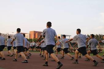 我们在集训期间教唱军歌,提升我们的部队文化,还举行了条令考试和体能测试,全方面的对我们进行了考核,这些就我们的集训记忆,它虽承载这苦涩与艰难,但却是我们最珍贵的回忆。转入正片,转入正片,今天是我们的最后一天,我们在李庆政委,张亚峰教官,秦震,王冰洋,敬超凡教官的审核下,进行了队列会操汇报表演。