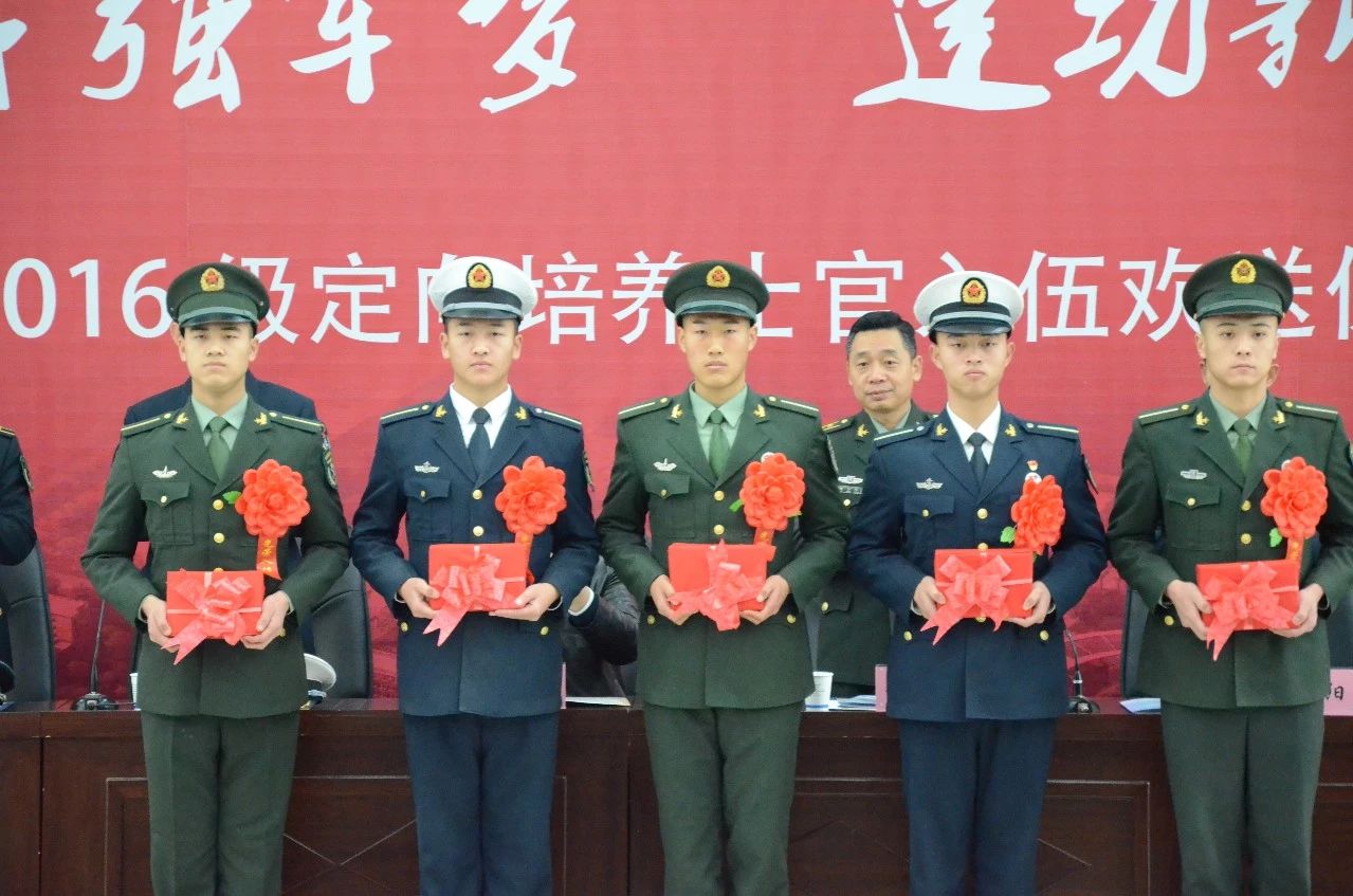 12月27日上午,学校2016级定向培养士官入伍欢送仪式在阎良校区报告厅举行,阎良区人民武装部部长姬水峰、海军航空大学青岛校区中校周玉杰、海军航空大学流亭训练基地中校杨阳、火箭军士官学校少校陶守辉、战略支援部队二十六基地少校杨军,我校党委副书记刘谦出席仪式。党政办、教务处、学生处、校团委、招生就业处、保卫处,电子工程学院、机械工程学院、飞行器学院、士官学院负责人及相关人员,全体大三士官生,部分学生家长参加仪式。仪式由士官学院党总支副书记李庆主持。