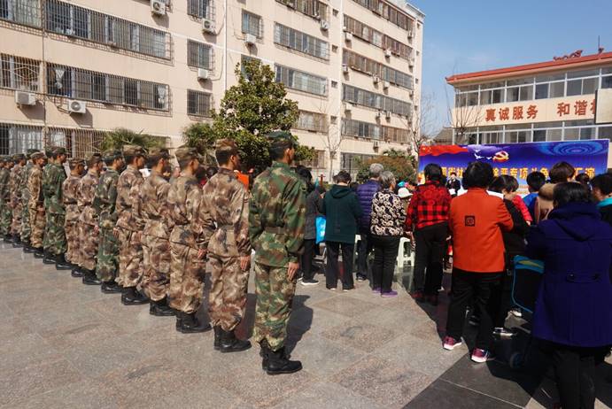 为积极响应中共中央、国务院发出的《关于开展扫黑除恶专项斗争的通知》,使士官学子深入了解“严打黑恶犯罪、弘扬社会正气”的文件精神,士官学院匕首操方队于2019年3月14日赴阎良区凤凰社区参与该社区“扫黑除恶专项斗争文艺汇演活动”。