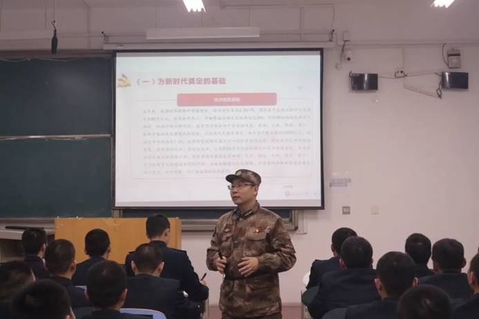 2019年3月14日晚七时,由士官学院党支部组织开展了题为“习近平新时代中国特色社会主义思想”党课学习活动在阎科楼165教室进行。本次党课主讲人为士官学院党总支副书记李庆,党课学习的成员为士官学院第19、20期入党积极分子。