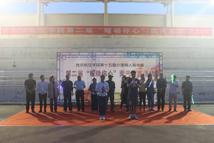 为丰富我校大学生的文化生活,培育学生团队意识和拼搏精神,锻炼健康体魄,舒缓愉悦心情,鼓励学生“走下网络、走出宿舍、走向操场”。2019年4月25日19时,买球赛十大平台第二届“耀动你心”荧光夜跑活动,在阎良校区操场举办,本次活动由买球赛十大平台学工部心理健康中心主办,士官学院承办。