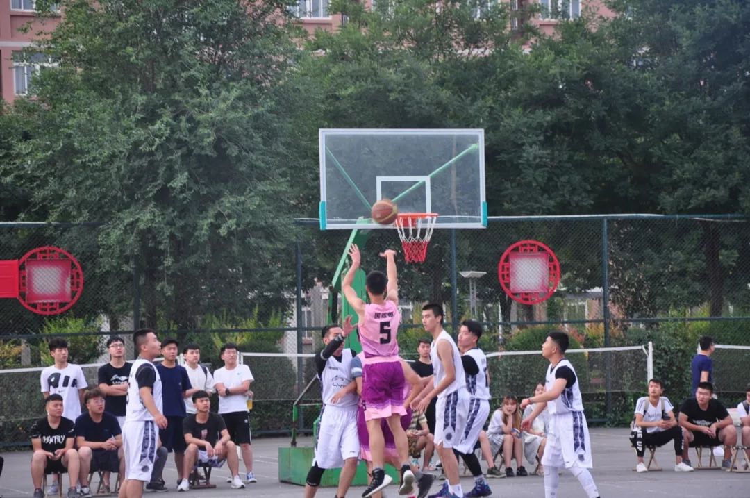 飞行器学院和机械工程学院比赛开始,在跳球中飞行器学院首先获得球权,双方球员进入状态较快,你攻我防,比分交替上升,但均未拉开比分。一边再战,另一块场地,能源与建筑学院与材料工程学院比赛中,能源与建筑学院通过快速得分,大比分领先材料工程学院,将比分扩大到两位数。下半场开始,飞行器学院采取稳扎稳打战术,一直保持比分领先。材料学院开始反攻,打出一波8:0小高潮,但能建学院稳住阵脚,继续将比分扩大。最后,飞行器学院以45比32取得胜利,能源与建筑学院以56比42赢下比赛。