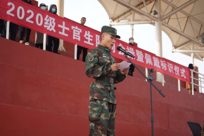 大会第三项,由新生营副营长吕昊龙带领全体新生宣读士官生誓言。一份奉献绽放拼搏色彩、一份执着宣誓青春无悔。