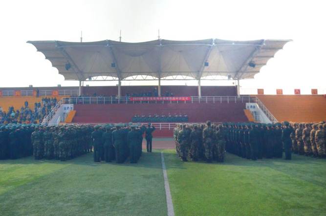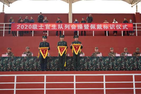 沙场秋点兵。士官学院为检验新生整体训练效果,提高学员的从军荣誉感和队列素养,于11月13日下午,在操场举行“2020级定向士官生队列会操暨佩戴标识仪式”。士官学院全体教职工和部分学生家长参加。