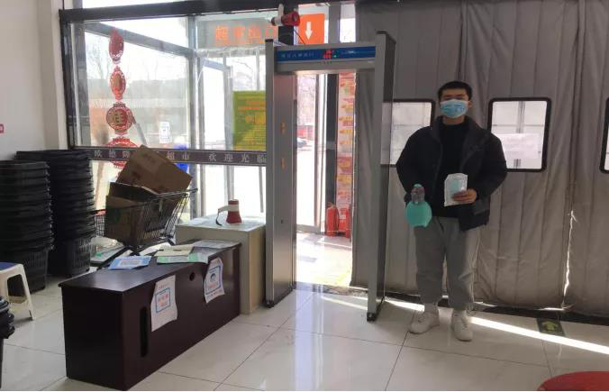 航信192D班杨焜彭,在日均人流量为500人的济源市欧德隆生活超市进行防疫志愿服务,他耐心仔细检查人员口罩佩戴情况,提醒顾客扫健康码,严格把控人员出入情况。