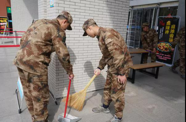 士官生从各处犄角旮旯开始打扫的细心,深入每一个角落的耐心,都使得他们走过的地方变得光鲜亮丽。校园里他们的身影随处可见。将士官学院乐于助人,不怕苦、不怕累的风格精神发扬到学校各处,得到了师生们的一致好评。