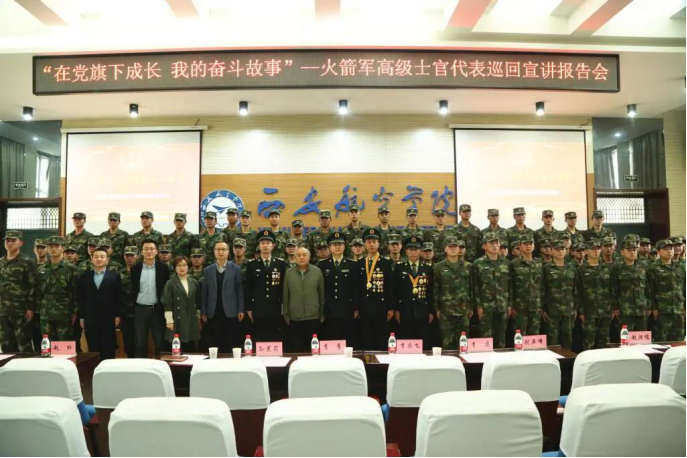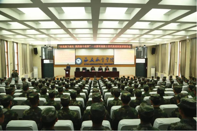 4月26日上午,火箭军高级士官代表巡回宣讲团一行7人莅临我校,在阎良校区阶一报告厅开展“在党旗下成长·我的奋斗故事”主题报告。宣讲团由火箭军政治工作部宣传局新闻舆论处处长李永飞上校带队。副校长李季,部分教师代表、全体士官生参加报告会。报告会由士官学院院长张军主持。