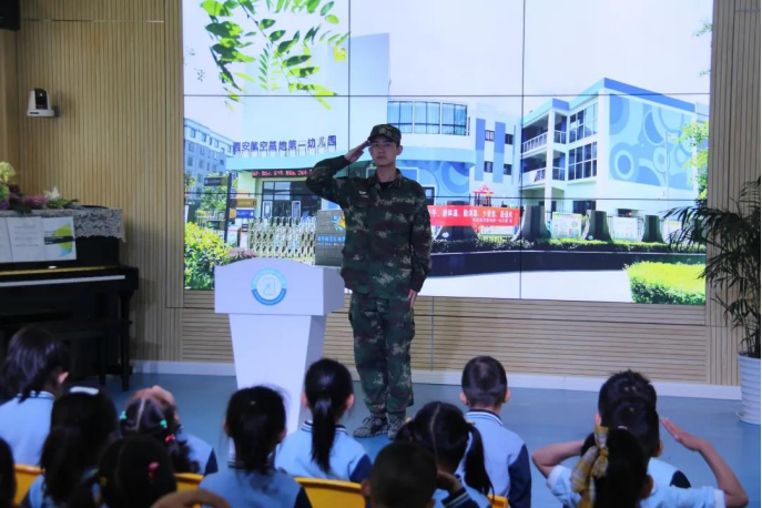 5月17日上午,士官学院宣讲团、国旗护卫队,社会实践部等27名同学前往航空基地第一幼儿园参加“童心筑梦携梦飞翔”科技节启动仪式暨爱国主义教育活动。
