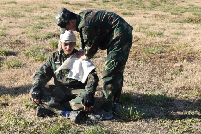 在教官的讲解与演示下,参训学员亲自实践,对心肺复苏、包扎止血等技巧进行多次有效的练习,使学员的基本医护技能得到强化,切实提高了他们的自我保护意识和自救互救能力。