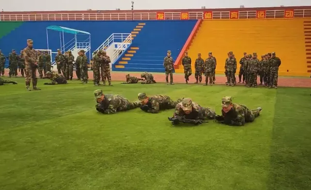 “匍匐准备!前进!”一声令下,学员们以标准的战术姿势快速匍匐前进,卷起阵阵尘土。匍匐是战争中有效保存自己,有效发挥火力的重要军事技能,士官生们刻苦练习,做好入伍准备。