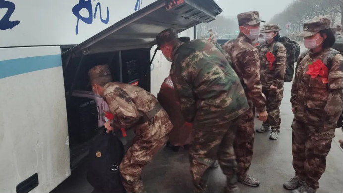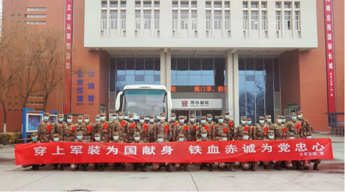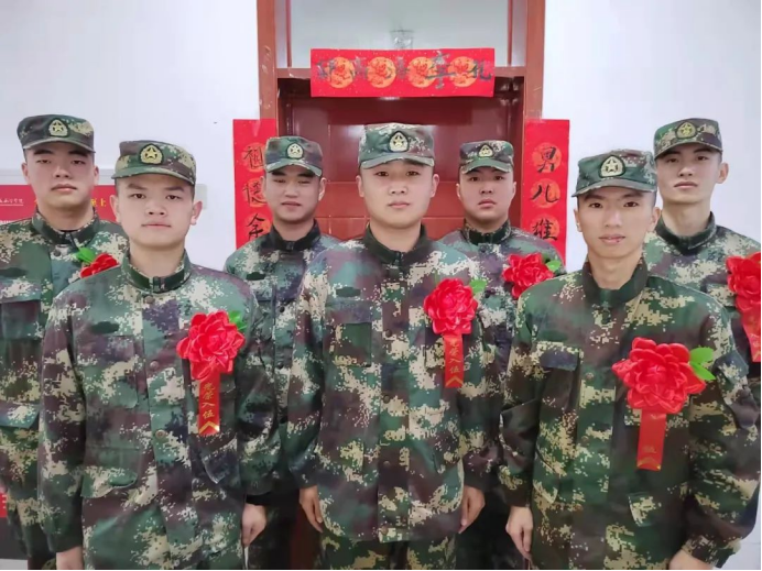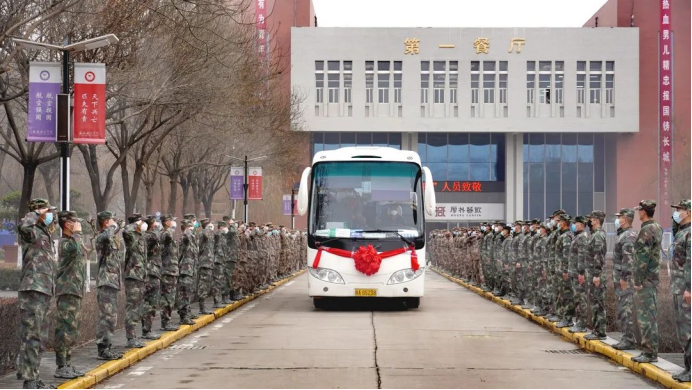 在雄壮威武的入伍队伍中