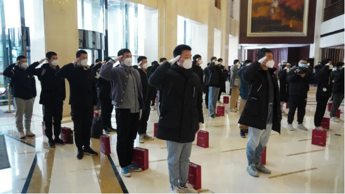 没有一个冬天不可逾越,没有一个春天不会来临。疫情胜利终会属于我们,上一秒我们携手同行共克时艰,这一刻我们满怀感激致敬他们。回望21天工作人员的默默付出,心中万分感激难以言表。临别之际,彬州方向学生代表柴茂文主持离别仪式,整齐的队列,庄严的敬礼,弘扬士官学院优良风气,彰显士官学员心怀感恩。