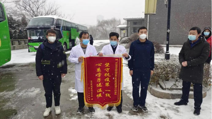 2022年1月21日,最后一批士官学员踏上返校的旅途。在这胜利的背后是无数的工作人员的无私奉献默默付出,为感谢他们用自己的坚守与博爱为士官学子铺垫归校之路,士官学院分别为各地政府和酒店专班工作人员致送锦旗。