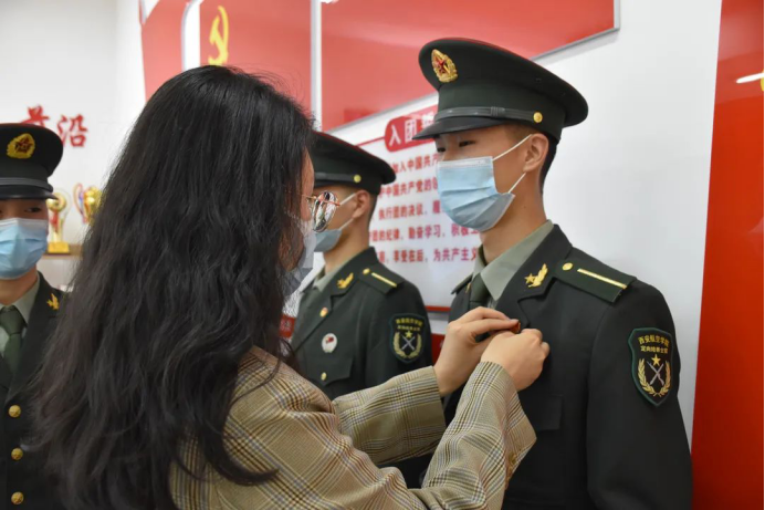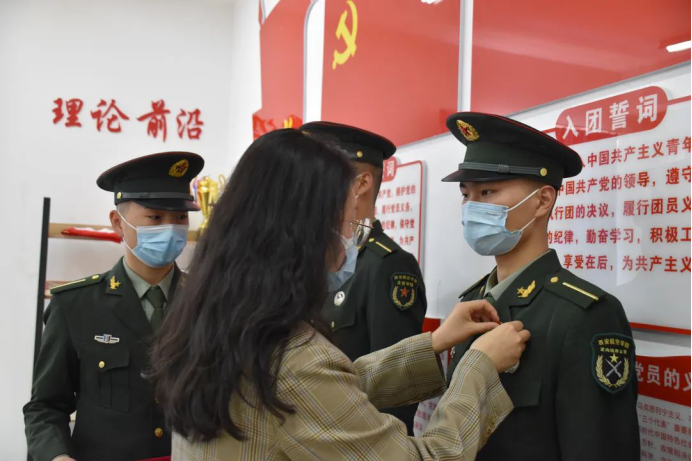 接着,士官学院团总支书记赵欣向新发展团员颁发团章、团员证、团徽。