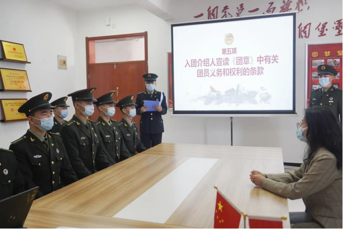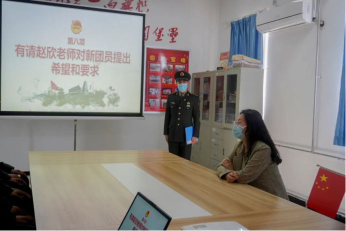 5月4日,士官学院举办2021-2022学年新发展团员入团仪式,士官学院团总支书记赵欣老师出席仪式,老团员代表以及五名新团员参加仪式,仪式由士官学院王新澎主持。
