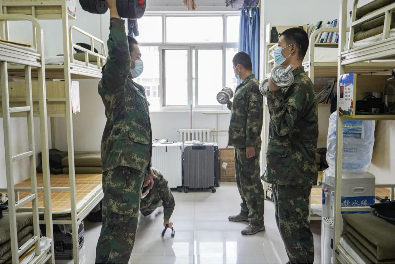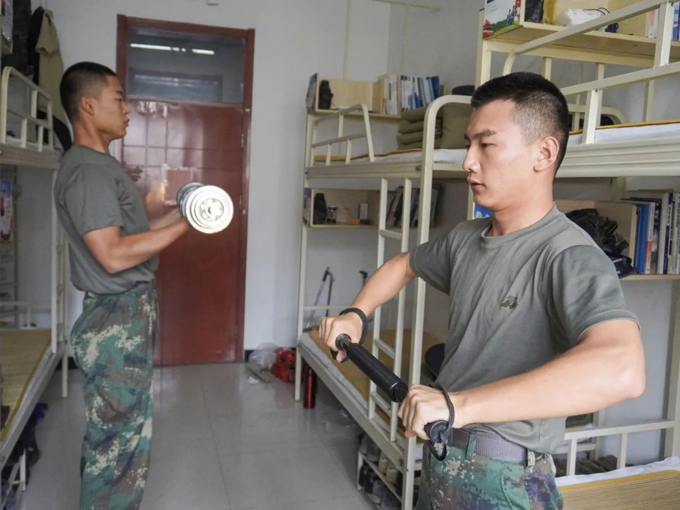 返校以来,学院组织线上教学与体能训练同步开展。在保证学业课程顺利进行的同时,敦促学员积极锻炼强化身体素质。寝室虽小但他们并非蜗居,上课时认真听课,下课时刻苦训练,他们的努力有目共睹,他们的实力也必将得到见证。