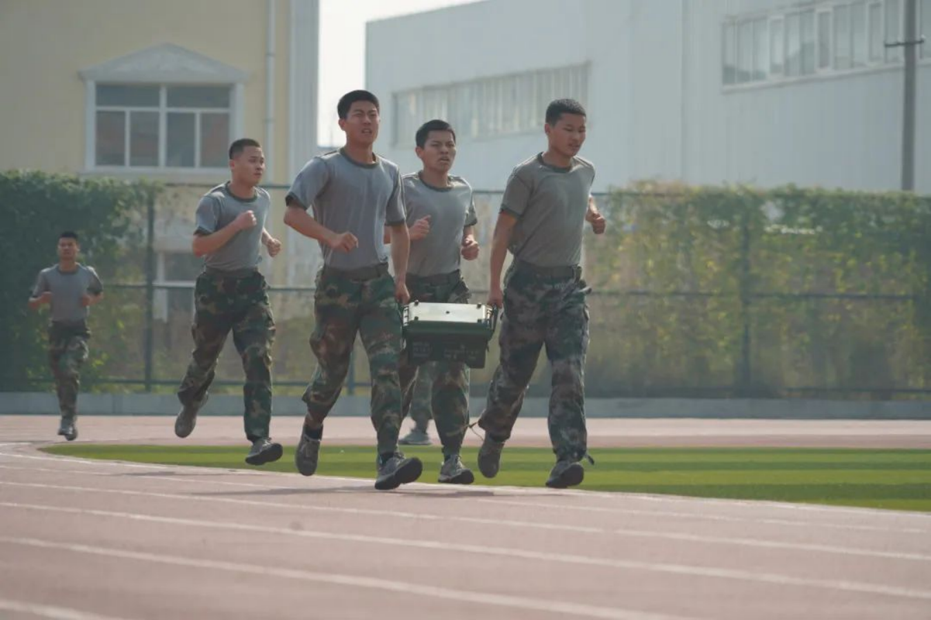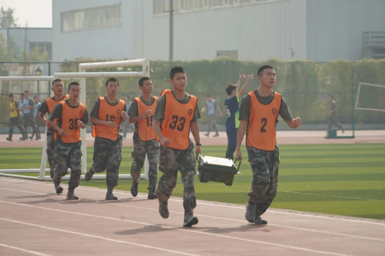 “3,2,1,跑”随着教官一声令下,各中队一齐奔跑,负重箱在各队手中传递,即使天气炎热,也无一人懈怠,即使队友体力不支,他们也绝不放弃。拉着跑,扶着跑,架着跑,团结互助的精神在他们之间体现的淋漓尽致,“加油,快到终点了”,“撑一撑,我扶着你”一声声鼓励的话激励着每一位队员全力以赴。他们一起奔向终点的瞬间就是青春的模样,随着最后一队到达终点,激情热血的比赛也接近尾声。