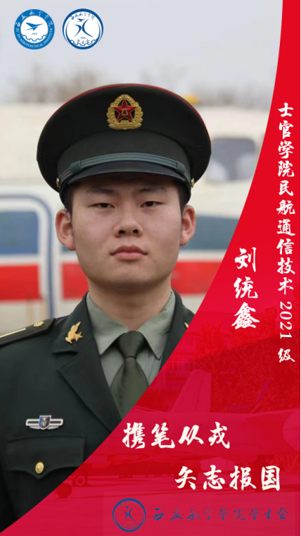 刘统鑫,男,汉族,共青团员,航信212D班,现任士官学院资助部负责人。在校期间,该同学作为入党积极分子,积极参加各种社会活动和社会实践,有良好的道德修养和坚定的政治方向。担任部门负责人期间,工作认真负责,能吃苦耐劳,勇于创新,不断进取,能够出色的完成学院分配的任务,荣获“军训优秀学员”,“国家励志奖学金”。
