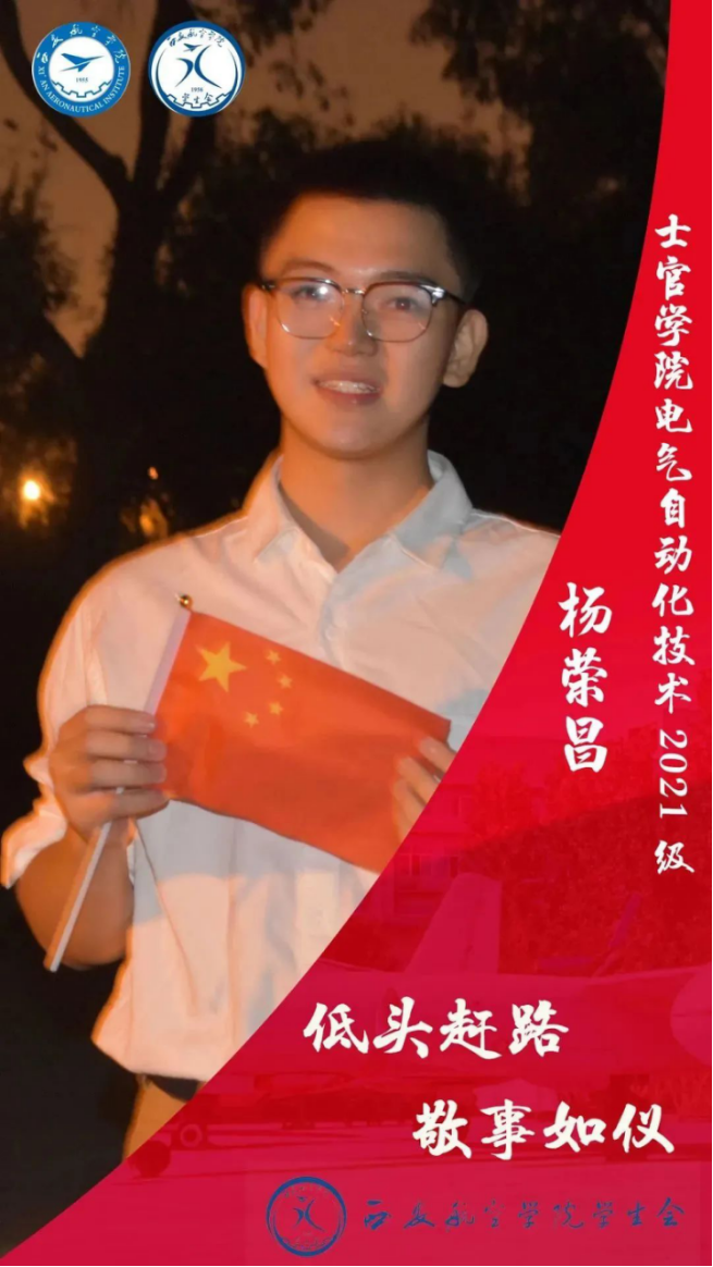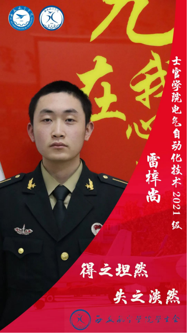 邢家豪,男,汉族,航信212D班学生,现任士官学院学生会主席团成员。入校以来,获得2021-2022学年国家奖学金,“校级优秀学生”一等奖学金以及西航铸剑杯二等奖等奖项。春蚕到死丝方尽,人至期颐亦不休。一息尚存须努力,留作青年好范畴。要立志将热血挥洒在实现强军梦的伟大实践之中,在军队这个大舞台上施展才华,在军营这个大熔炉里淬炼成钢,书写绚烂、无悔的青春篇章。