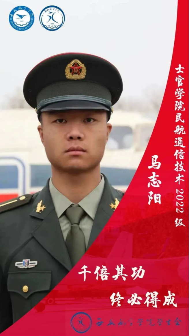 马志阳,男,回族,共青团员,航信222D班。在校期间,作风优良,对待各项任务态度认真,刻苦学习、尊师重道、个人素质强硬,得到师生一致好评。性格开朗,热情活泼,风趣幽默。对待学习精益求精,对待工作认真负责,对待生活积极乐观。