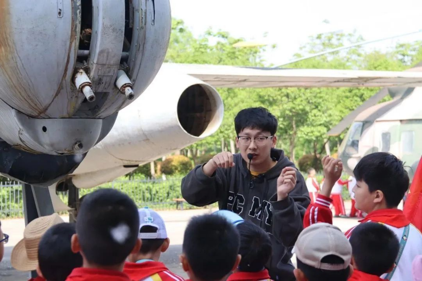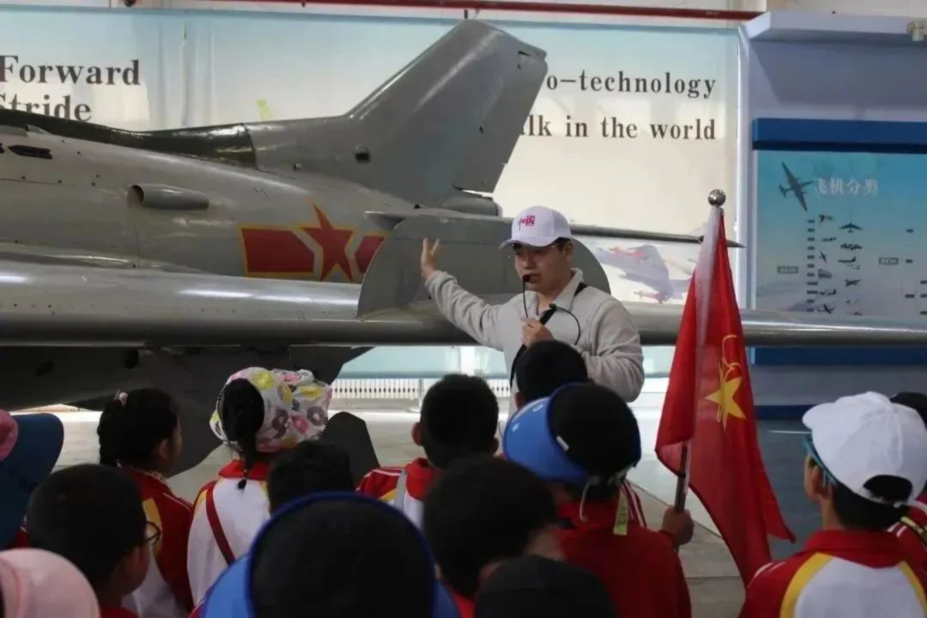 紧接着,孩子们在讲解员的带领下到学校停机坪及航空实训基地参观学习,讲解员为孩子们讲解学校停机坪飞机的历史信息及用途,并通过现场讲解,使孩子们对航空航天知识有更深入的理解。