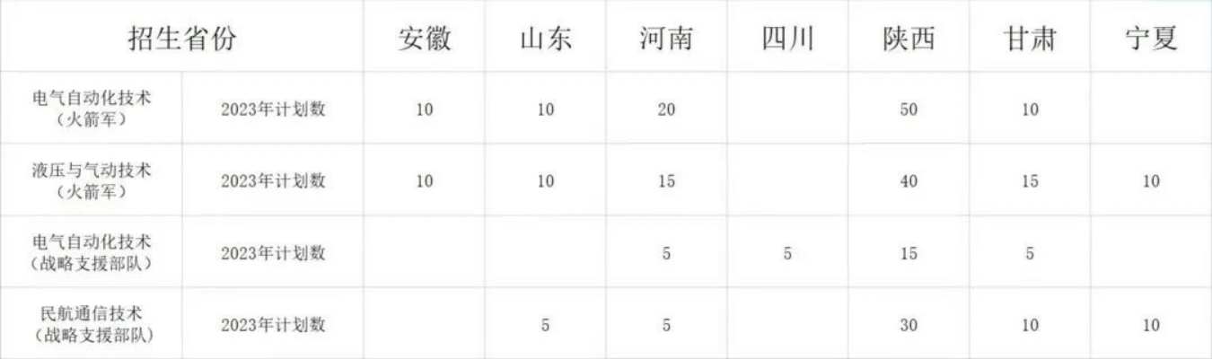高职(专科)计划:290名。其中火箭军200名,战略支援部队90名。