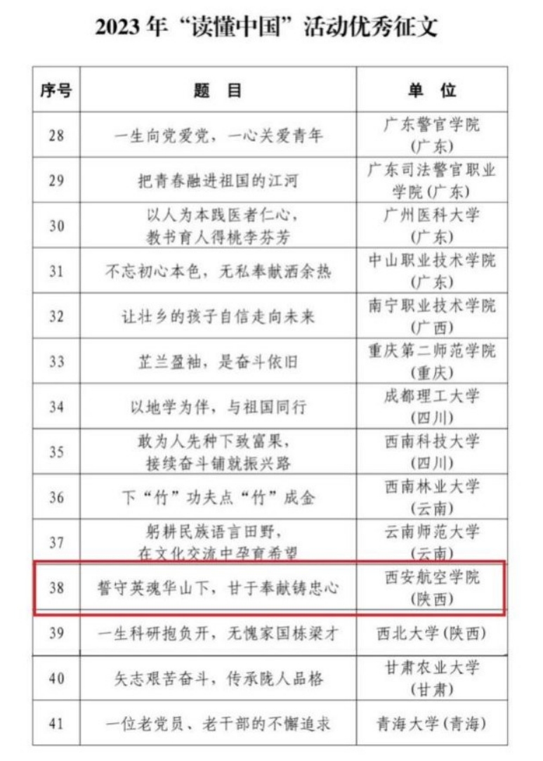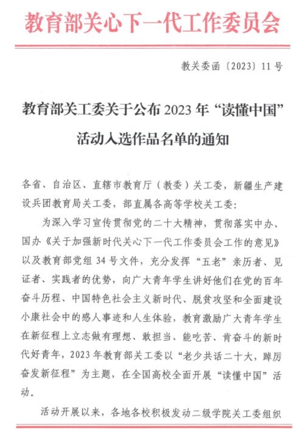 近日,教育部关工委2023年开展的“老少共话二十大,踔厉奋发新征程”为主题的“读懂中国”活动评选结果已公布。十大买球官方网站2022级学员张家祥的征文《誓守英魂华山下,甘于奉献铸忠心》获教育部关工委2023年“读懂中国”活动优秀征文。本次选送的征文为学院师生深入挖掘记录“全国模范退役军人”张顺京在党的百年奋斗历程中的感人事迹和人生体验。