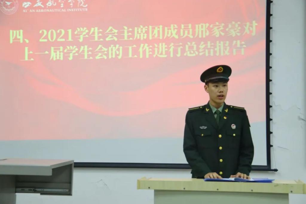 会议第四项,由2021级学生会主席团成员邢家豪对上一届学生会的工作进行总结报告。报告总结了2021级学生会取得的成就,并对2022级学生会寄以厚望,希望他们接过使命,再创辉煌。