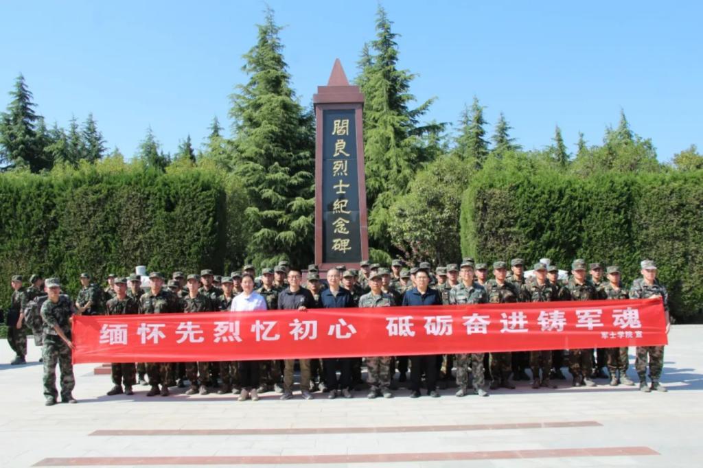 历经两个小时的路途,学员们到达此行的终点——阎良烈士陵园和试飞烈士陵园。在陵园里,学员们踏着先烈的足迹,感悟历史,学员们深知先烈们的英勇事迹是激励前进的动力。纪念碑前,由学工办主任来东主持仪式。首先,全体师生齐唱中华人民共和国国歌;随后,党总支书记李庆宣读祭文,告诫学员们勿忘历史,缅怀先烈,用知识和本领武装自己,以应对未来的种种挑战。全体师生脱帽肃立,为这些抛头颅、洒热血的先烈战士们表达最崇高的敬意。