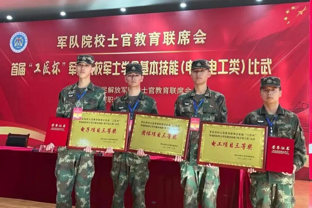 2023年,学院获得了多项荣誉,学院团总支荣获买球赛十大平台第一届“青年志愿服务项目大赛”二等奖,“社会实践优秀单位”,校运动会“团体总分第一”,买球赛十大平台第四届“向快乐出发”荧光夜跑一等奖,买球赛十大平台“新生杯”篮球比赛一等奖,军地院校军士学员电工电子基本技能比武大赛电工、电子项目及团体三等奖。