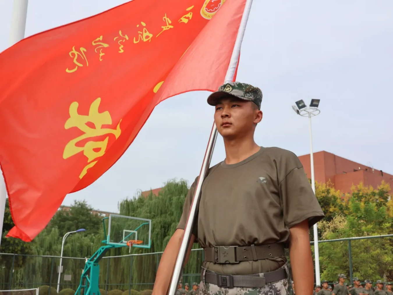 舞旗表演中,你们整齐划一,气势如虎,画出波涛山河。