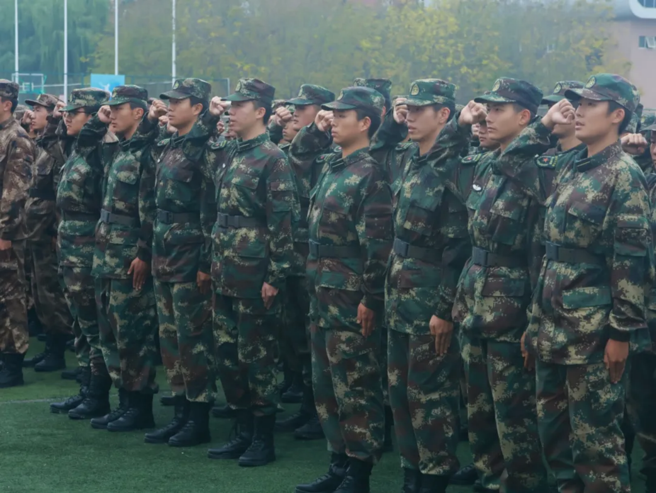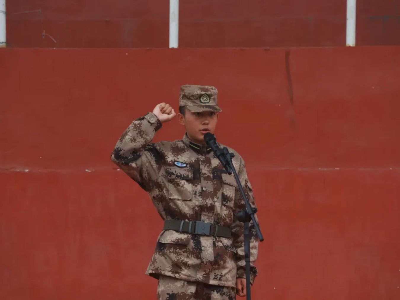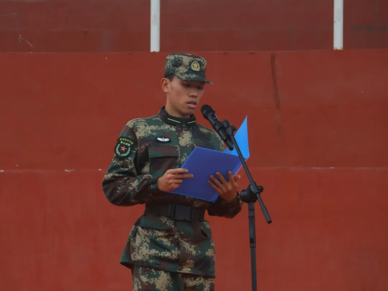 仪式第三项,由学生代表航信232D班赵豪杰带领全体新学员宣读军人誓词,学员们举初心之拳,宣铮铮誓言。那一刻,坚定的声音,每一个字都饱含着学员们内心的真诚与决心。