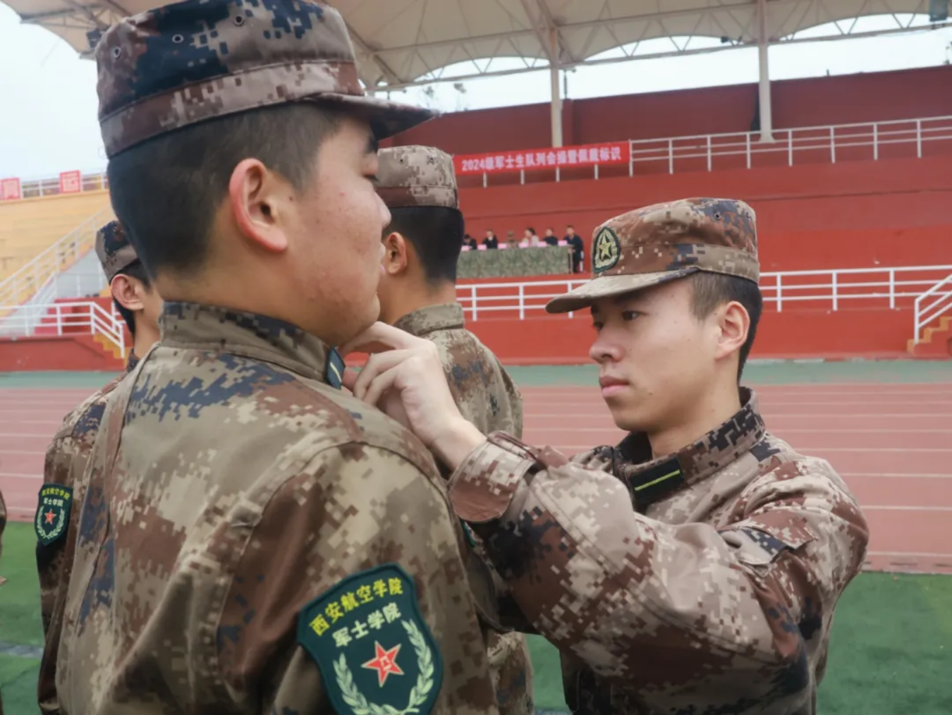 青春扬帆竞技场,少年壮志显锋芒。为检验2024级军士学员训练成果,强化学员的身体素质、纪律意识以及团队协作能力。11月15号,十大买球官方网站在操场举行“2024级军士学员队列会操暨佩戴标识仪式”。十大买球官方网站院长张军、党总支书记李庆、党总支副书记刘书林、团总支书记赵欣、军政教官张亚峰、芦智钢、黄佳乐、王景文参加此次仪式,全体2024级军士学员参加。