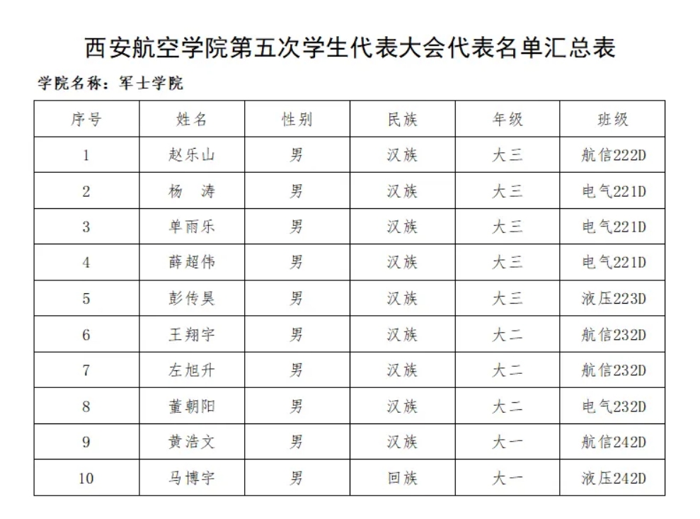 大会选举产生了10名参加学校第五次学生代表大会的同学。