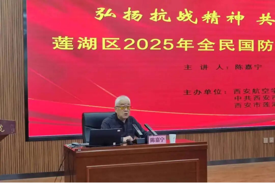 本次报告会以“弘扬抗战精神,共筑国防长城”为主题。陈嘉宁同志于1951年1月入伍,曾担任0944号飞机机械师,亲身参与抗美援朝作战,经历战火洗礼,战后转业至地方工作,多次荣获先进工作者、劳动模范等荣誉称号,并著有《燃烧的天空》《银鹰鏖战在朝鲜上空》。他以自己的亲身经历,深情讲述了那段艰苦卓绝、英勇奋斗的岁月,展现了老一辈革命军人坚定的理想信念和深厚的家国情怀。
