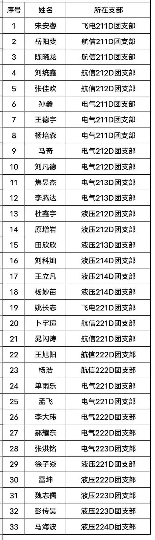 2022年度士官学院优秀团员公示