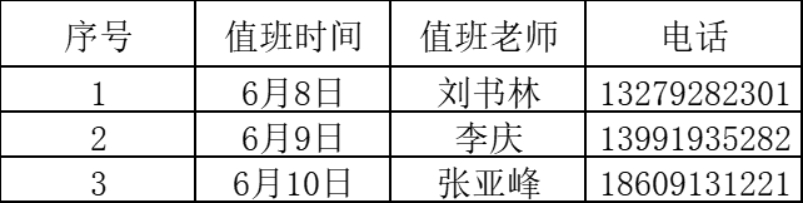 11.十大买球官方网站端午节值班安排。
