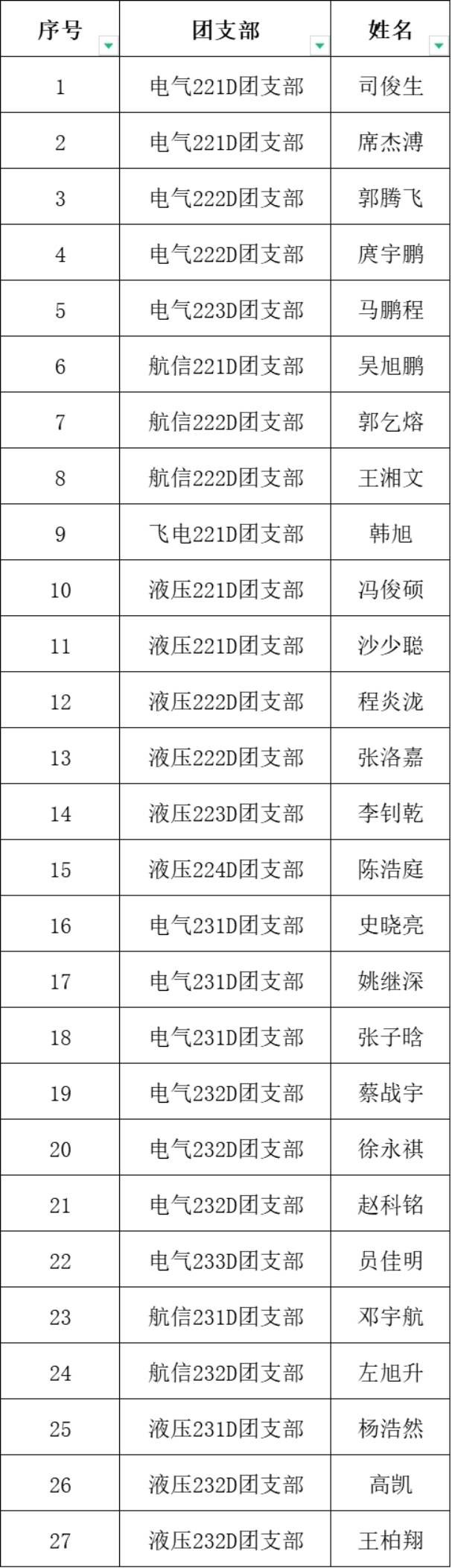 根据学校《关于做好2024年度团员发展工作的通知 》要求,十大买球官方网站团总支拟推荐司俊生等27名优秀青年作为共青团员,现予以公示。