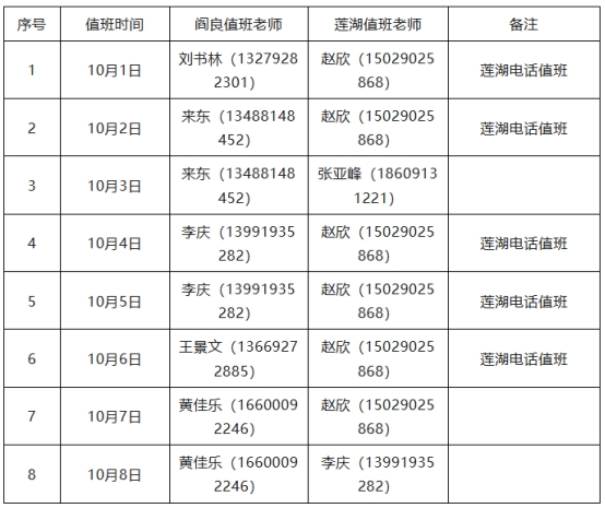10.十大买球官方网站国庆节、中秋节值班安排: