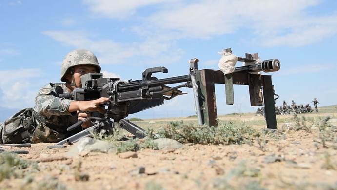近日,新疆军区某团将部队拉至野外陌生地域组织重机枪手重难点课目实弹射击考核,有效检验了火力分队在复杂战场环境下的火力打击能力。