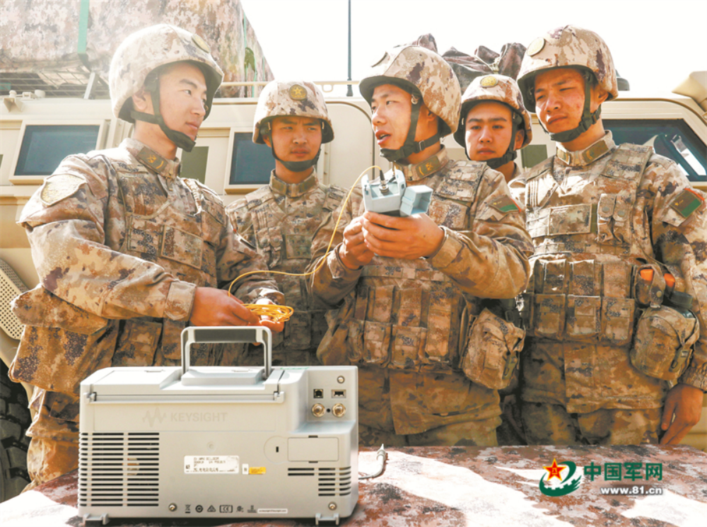 该团定向培养军士刘彪(左三)为战友讲解弹药检测方法。袁旖阳摄